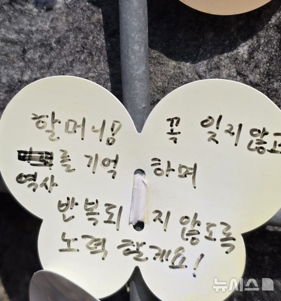 ナヌムの家の追悼の壁に、ある訪問者が残したメモ(c)NEWSIS