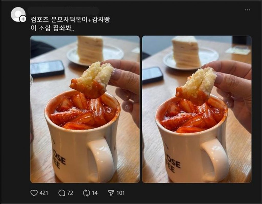 実際、消費者の反応も熱い。スレッズなどSNS上では「カフェでトッポッキを売るのが新鮮」「アメリカーノとトッポッキのセットが5900ウォンでコスパがいい」といった感想が相次いでいる。