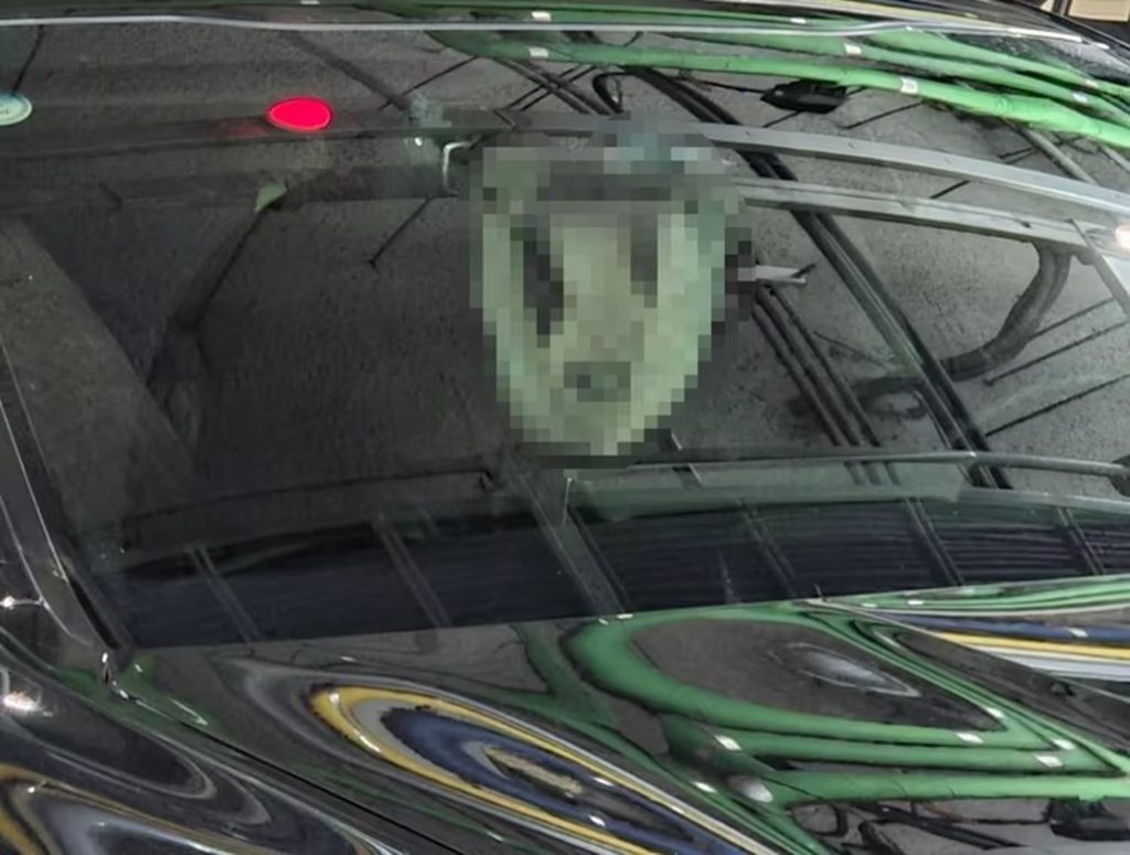 写真には駐車スペースからはみ出して止められた黒い車が写っており、車内のバックミラーに白い女性用下着が掛けられていた。