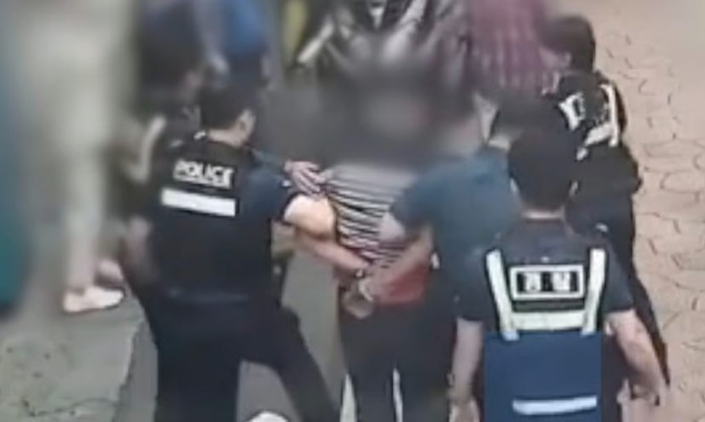 間もなく男が店の出入り口を激しくたたくのを見た警察官が職務質問し、刃物を所持していることを確認して現行犯逮捕した。