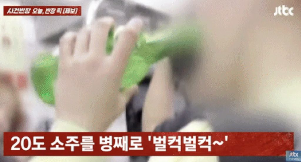 番組によると、先月27日午後10時半ごろ、ソウル地下鉄2号線の車内で20〜30代とみられる女性が、かばんから赤いふたの付いたアルコール度数20度の焼酎の瓶を取り出し、ラッパ飲みする様子が撮影された。数分間、焼酎と水を交互に飲み、ソウル大学入口駅で降りたという。