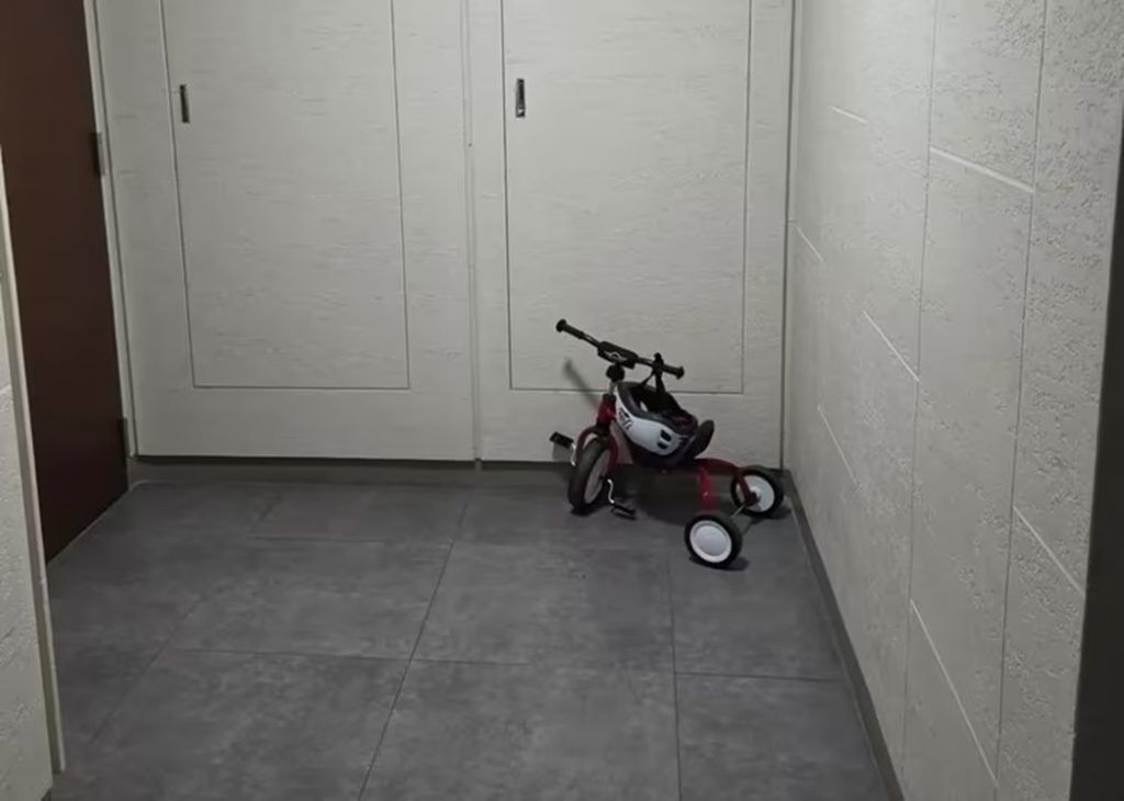 ソウルの集合住宅の住民が玄関前の共用廊下に子どもの三輪車を置いていたところ、隣人から「違法放置物」として通報されたとSNSに投稿した。