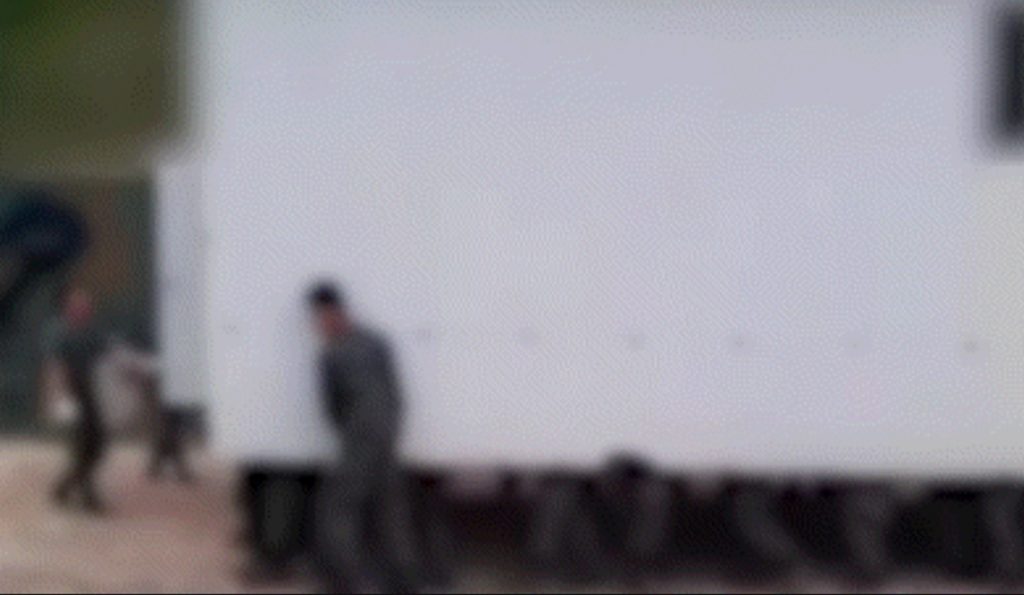 映像には、数十人の兵士が巨大な構造物を移動させる様子が映っている。いずれも安全装備や保護具は身につけていない様子だ。