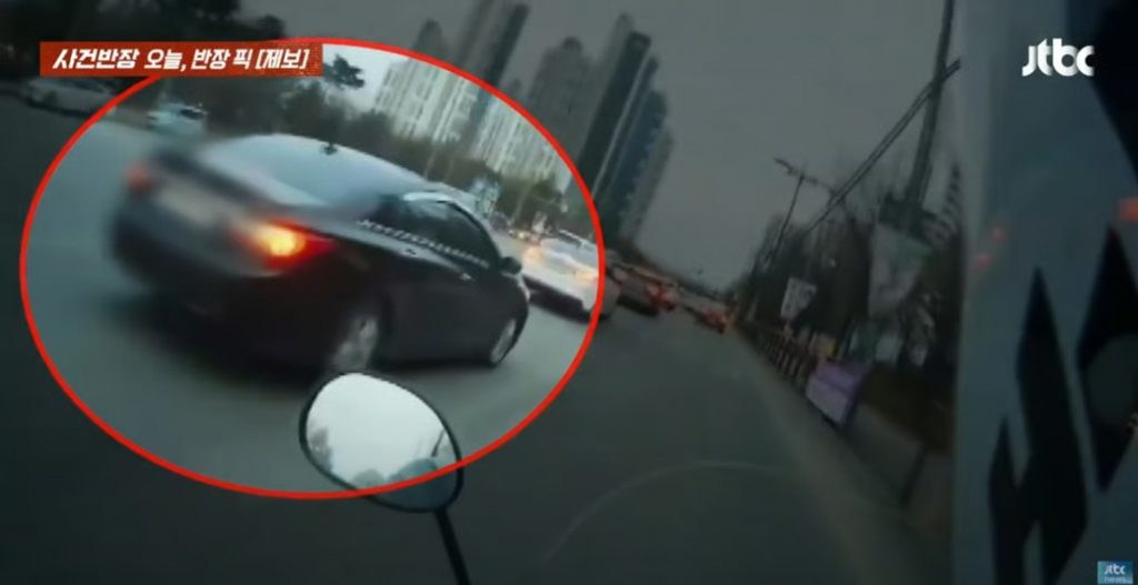 韓国の放送局JTBCの番組「事件班長」で最近、乗用車が無理に車線変更してオートバイを転倒させる事故の映像が紹介された。加害者は責任を認めず、数カ月たった今も示談を拒んでいるという。