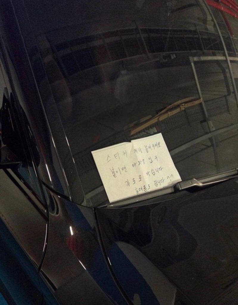 マンションの共用玄関前に違法駐車を繰り返していた車の所有者が、「警告ステッカーを貼ったらマンションの入り口を塞ぐ」という「脅迫」のメモを残した。韓国で話題になっている話だ。
