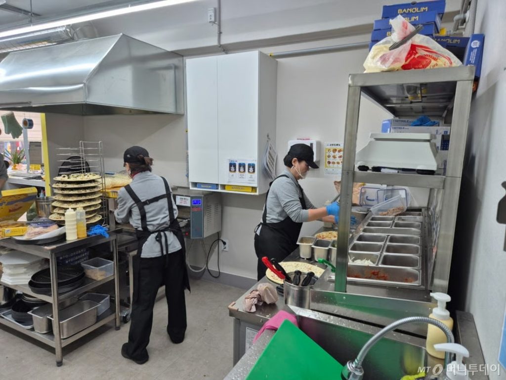 今月12日午前、ソウル市衿川区にある「チャッカン(やさしい)ピザ1号店」の厨房で、クォン・ミョンオクさん(65)の声が響いた。レシピを目で追いながら、手際よく生地にチーズをのせ、その上にプルコギを広げていく。具材を整えると、1枚のプルコギピザが完成した。