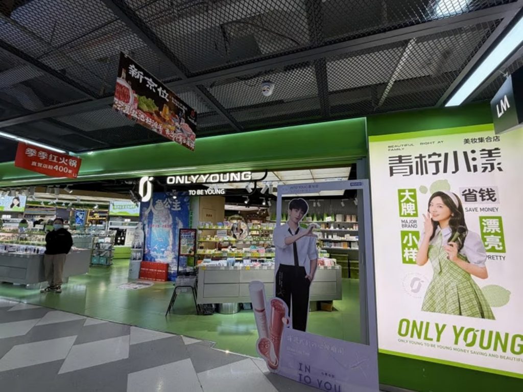 流通業界によると、問題の店舗は「オンリーヤング(ONLY YOUNG)」という名称で、中国湖南省の長沙市や瀏陽市で営業中。店舗では海外ブランドの化粧品を中心に販売しており、内外装には「緑色」が多用されている。