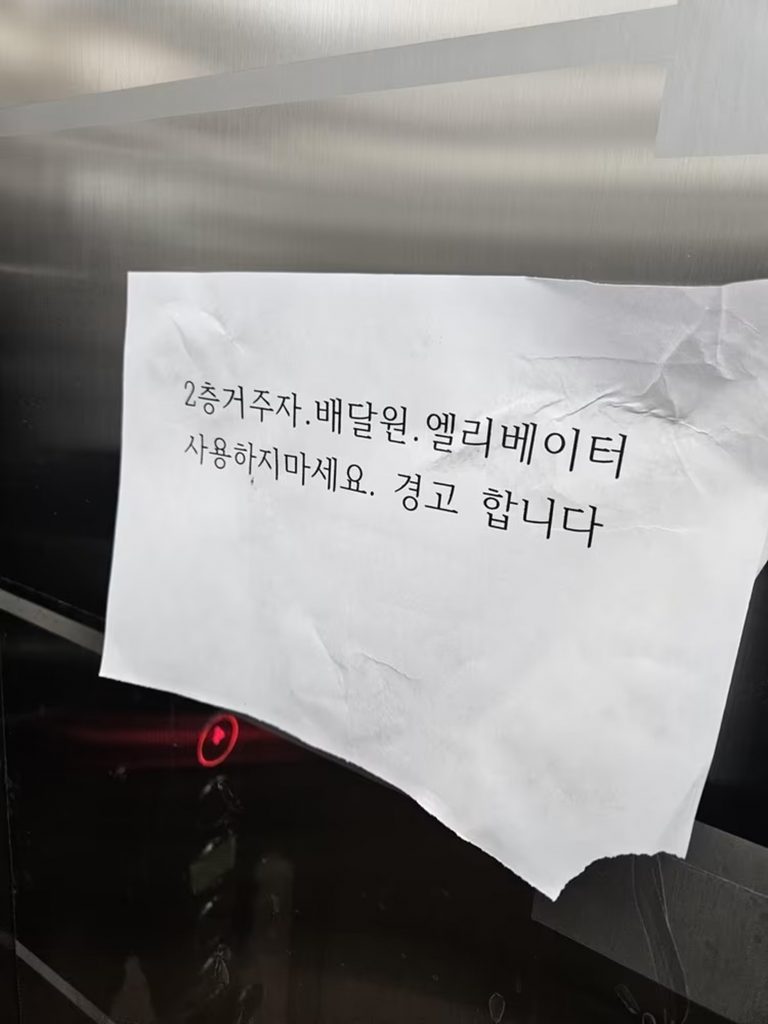 韓国で、マンションのエレベーター内に貼られた警告文をめぐり、インターネット上で賛否が巻き起こっている。