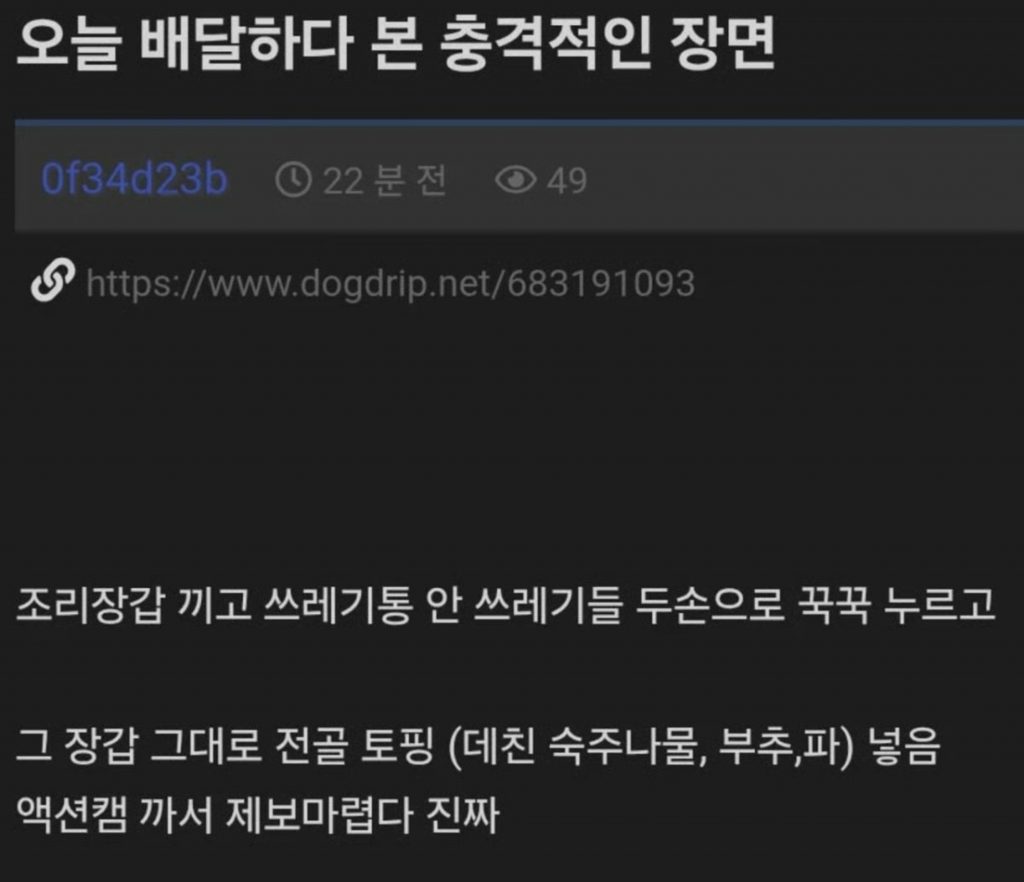 飲食店の店主がゴミを押さえつけた手袋のまま調理していたという配達員(ライダー)の目撃談が、韓国で話題になっている。