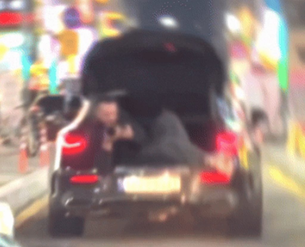 韓国・京畿道安山市(キョンギド・アンサンシ)で、開け放ったトランクに人が寝転んだ状態で走行する乗用車が目撃された。このほどインターネット掲示板「ボベドリーム」に動画が投稿された。