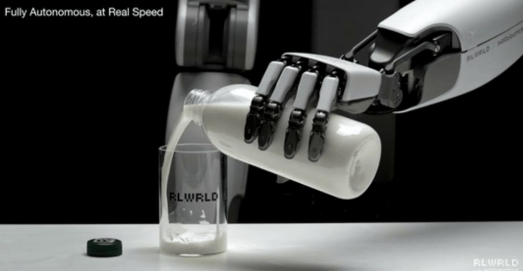 ロボットが指先で世界を学び始めた。人の介入なしにガラス瓶のふたを開け、コップに牛乳を注ぐ――こんな一連の動作が完全自動だ。