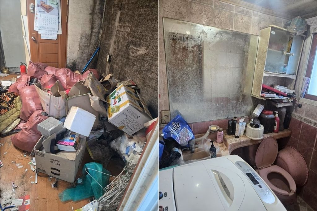公開された写真には、ゴミが床に散乱し、足の踏み場もないほど荒れた室内が写っている。袋詰めのゴミが積み上がり、トイレもカビに覆われ、鏡には汚れが固着していた。
