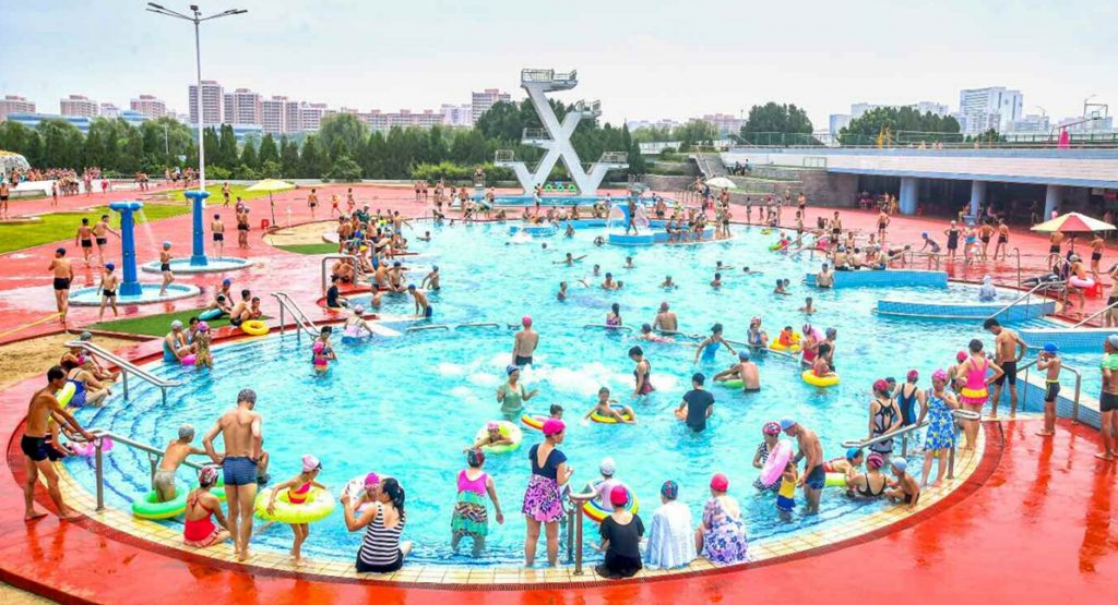 朝鮮労働党機関紙・労働新聞は8月3日、「党の恩情のもとに整備された文化休息地のあちこちで人民の喜びに満ちた笑い声が響いている」として、全国各地のウォーターパークや海水浴場を紹介した。