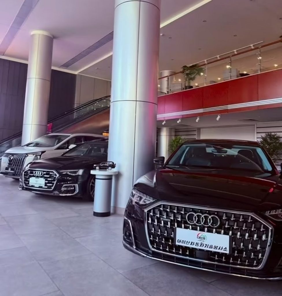 投稿したのは中国からの留学生で、北朝鮮の大学院に在籍しているというユーザー「恩情博士」。投稿した写真には、アウディA8、BMW5シリーズ、ボルボS90、トヨタのハイブリッド車と思われる車両が映っている。ナンバープレートには「アミ山自動車技術サービスセンター」の表記があり、これらの車両が同施設で販売されていることを示している。