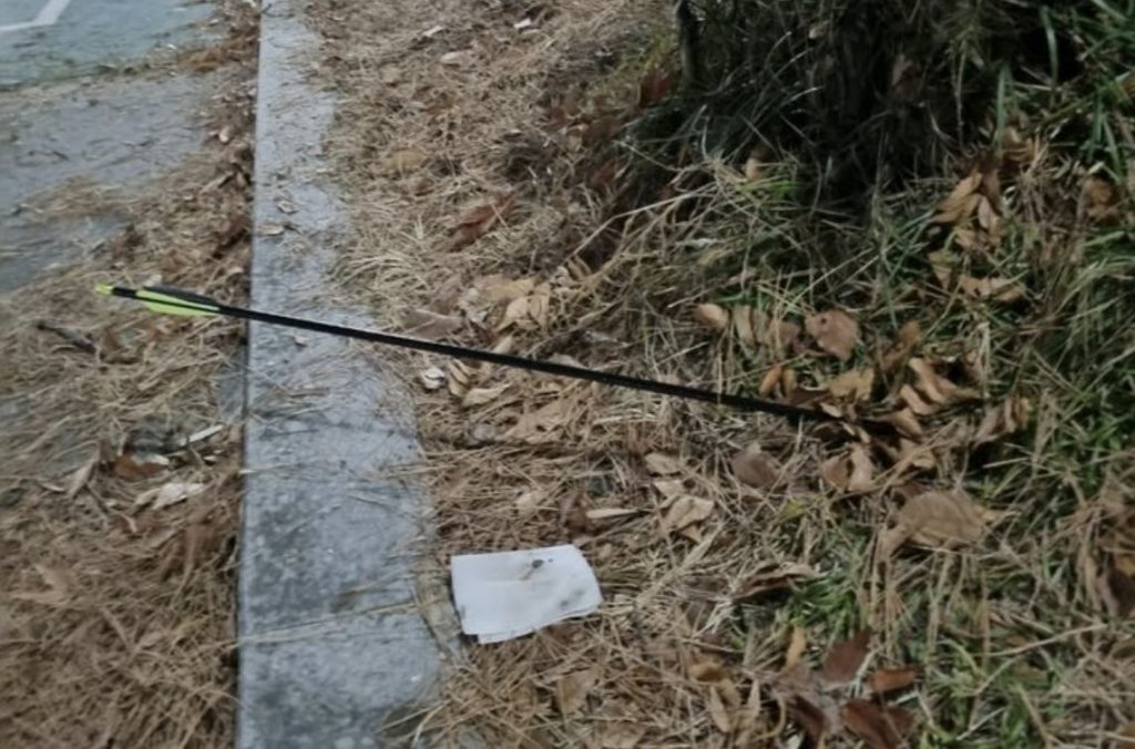 矢は鋼鉄製の矢尻とプラスチック製のシャフトで構成され、全長は約80センチ。女性にけがはなかった。
