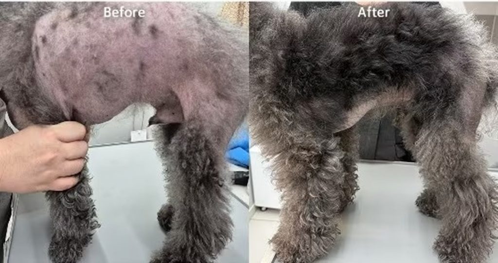 ソウル市清潭にある動物皮膚クリニックによると、2年以上にわたり脱毛症状が続いていた6歳の去勢済みオスのプードルが来院した。一般的な脱毛症とは異なり明確な基礎疾患は確認されず、皮膚の乾燥や紫外線への過敏性が強く、日常生活にも支障が出ていたという。