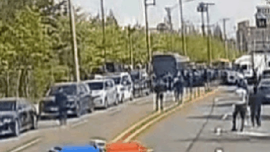 民主労総公共運輸労組貨物連帯は21日、事故前後の状況が映った映像を公開した。映像には、事故当日の20日午前、組合員数十人が物流センター前の道路を占拠し、車両の出庫を阻止する場面が映っていた。