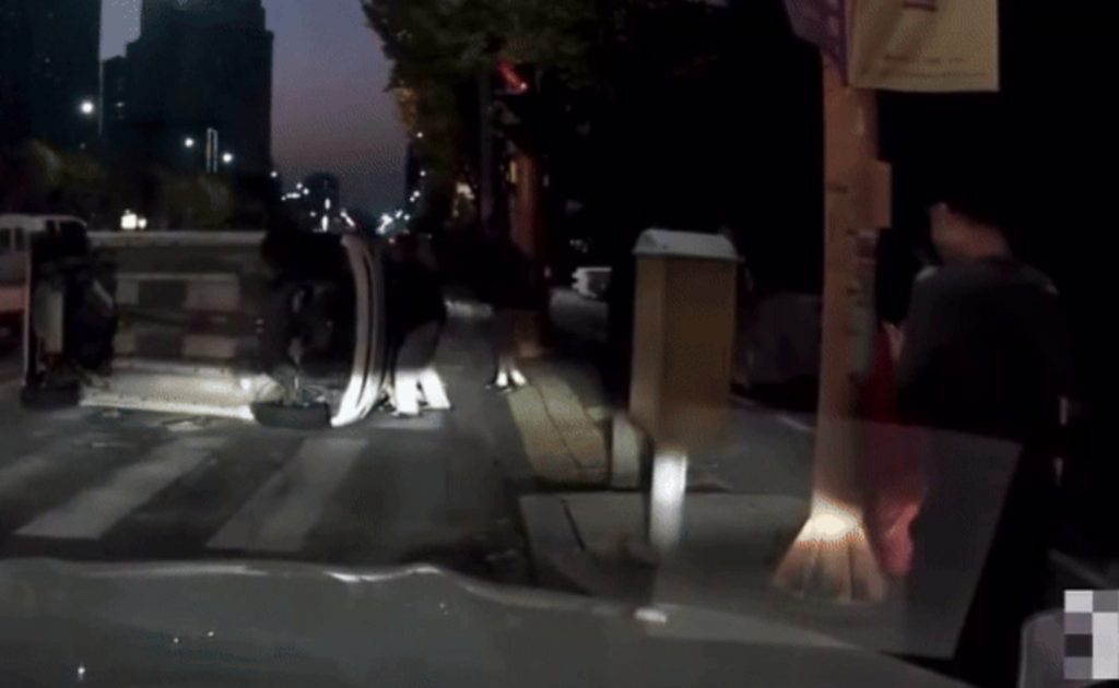 車が横転、ドライバーを市民が一斉救助…韓国・感動の光景「どこからともなく集まってきた」