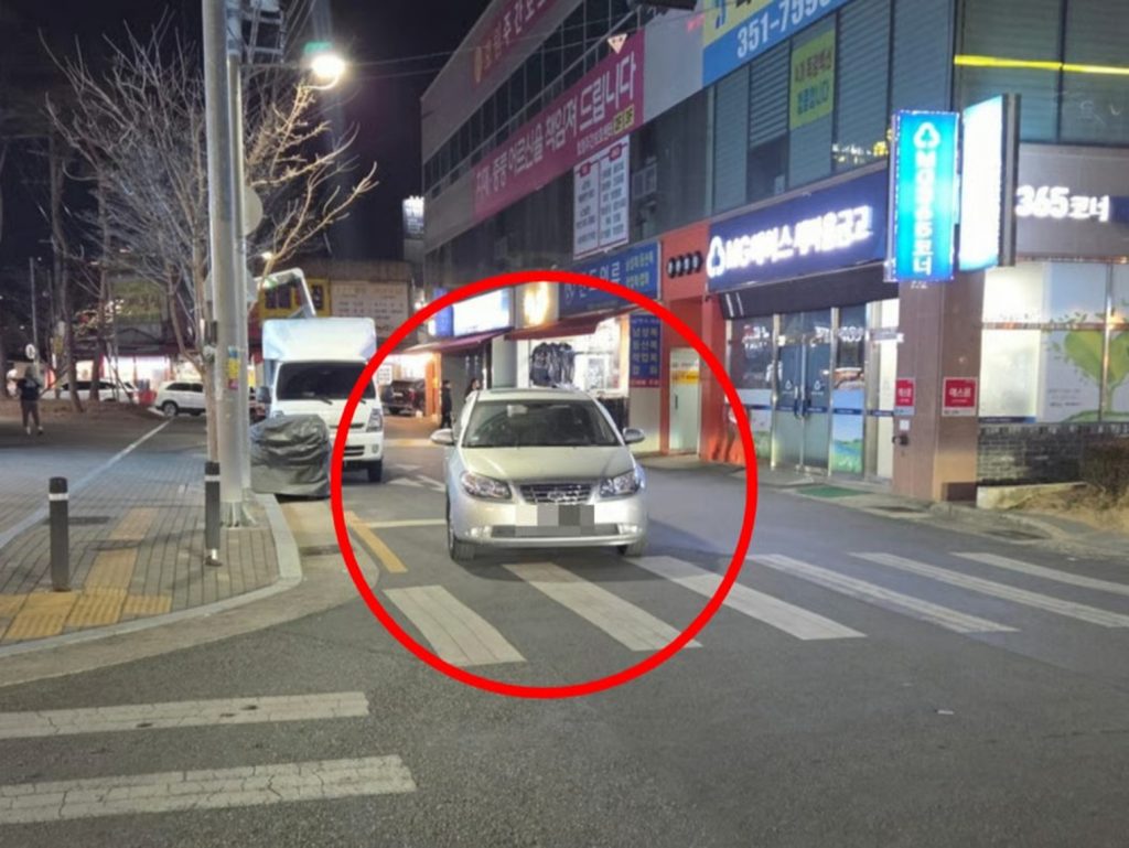 韓国のオンラインコミュニティ「ボベドリーム」に今月2日、大邱(テグ)市内で撮影された1枚の写真が投稿された。そこには道路の中央を塞ぐ形で止められた銀色の乗用車が写っている。