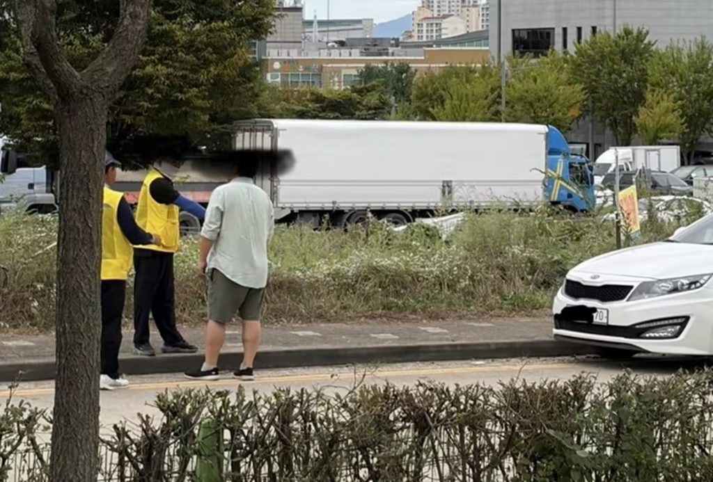 投稿者は、楊州市の公園近くで知人を待っていた際、この光景を目にした。公園周辺の道路は黄色い二重線と案内板で駐車禁止と明示されていたが、ここに乗用車が強引に駐車しようとした。