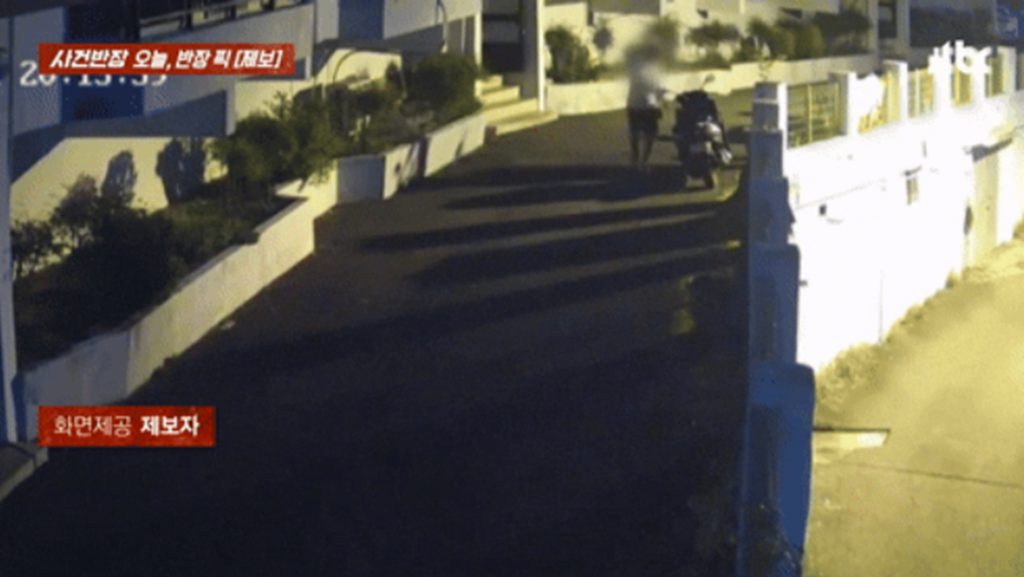 事件はJTBCの番組「事件班長」が取り上げた。公開された防犯カメラ映像には、深夜に路上を歩く男が駐車中のオートバイに近づき、液体をかける場面が映っていた。