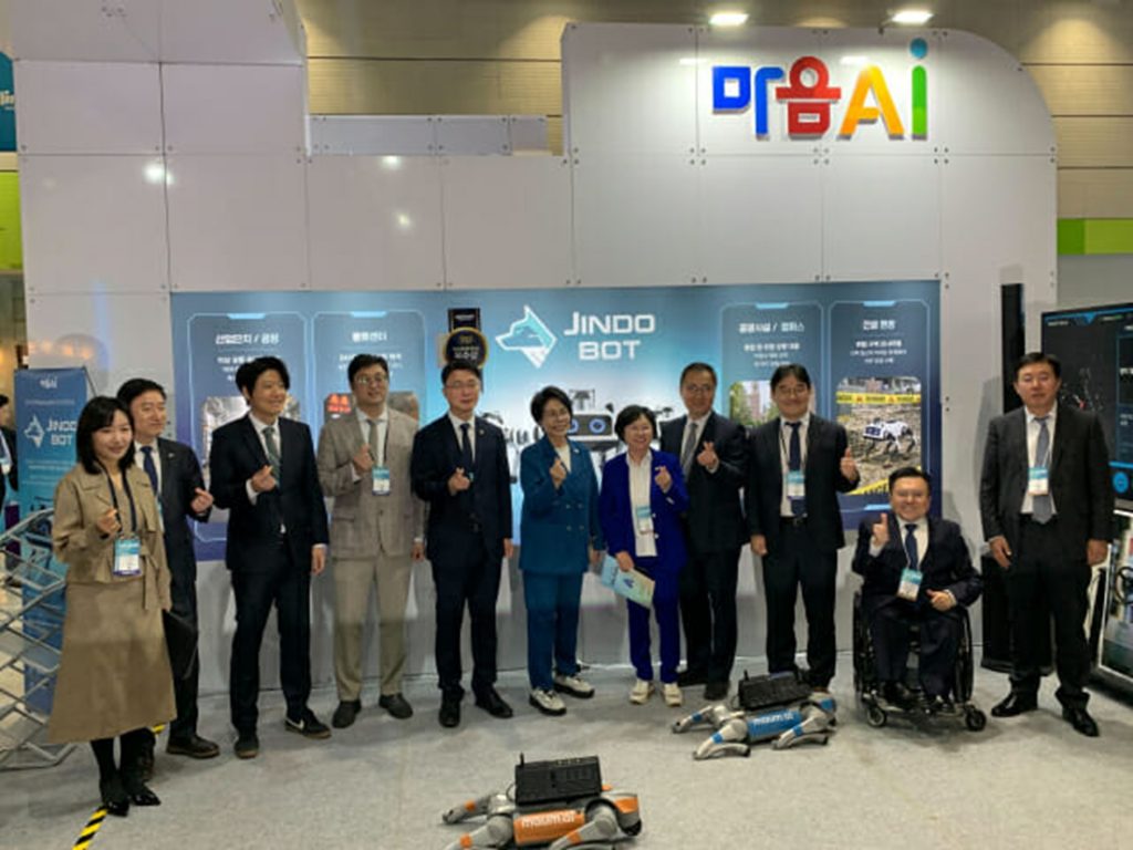 イベント初日のこの日、リュ・ジェミョン科学技術情報通信第2次官、チェ・ミンヒ国会科学技術情報放送通信委員会委員長らがMAUM.AIの展示ブースを訪れ、国産4足歩行ロボットを視察した。