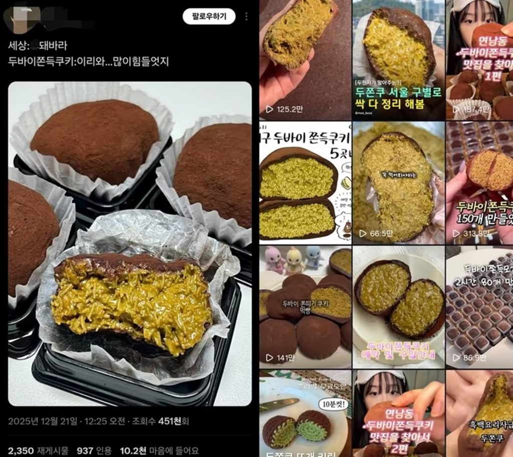 韓国で「ドバイもちもちクッキー(ドゥチョンク)」と呼ばれる高級系スイーツが、8000ウォン〜1万ウォン(約900〜1200円)と高価であるにもかかわらず、大きな人気を集めている。背景には、不況の中で若者たちが求める「自分への小さな贅沢(スモール・ラグジュアリー)」という消費トレンドがあると専門家は分析している。