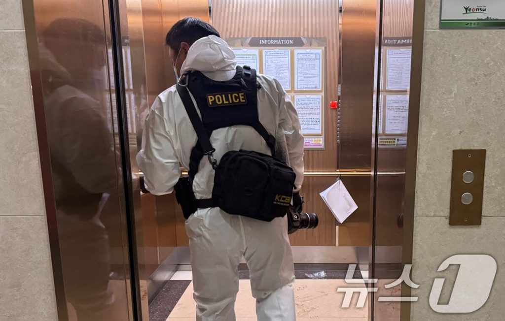 仁川市延寿区のあるマンションで捜査に入る警察官(c)news1