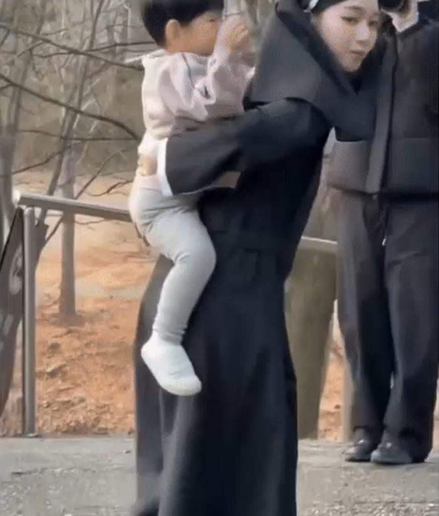 韓国のガールズグループaespa(エスパ)のメンバー、カリナが、ミュージックビデオの撮影中に赤ちゃんを背負う姿がオンライン上で公開され、大きな話題となっている。