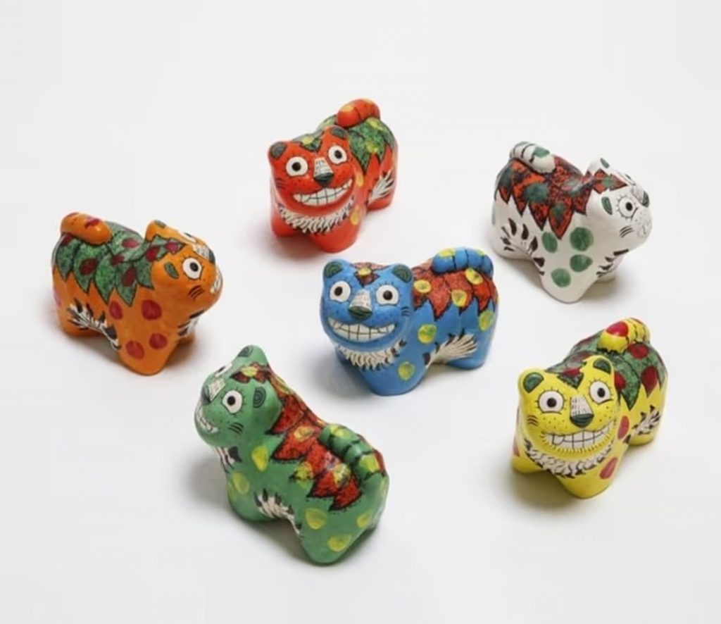 このグッズは景福宮や昌徳宮、仁川空港内の韓国伝統文化センターなどで販売されており、マグネットやバッジ、ポストカードといった小型記念品が人気を集めた。特に、Netflixのアニメ『KPOPガールズ! デーモン・ハンターズ』の影響で、虎を模した陶磁器人形や伝統の笠「カッ」を模したカップ、日月五峰図をモチーフにした商品が注目された。
