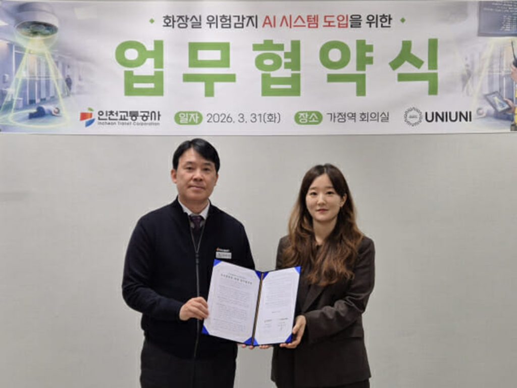 韓国・仁川交通公社とスタートアップ「ユニユニ(UNIUNI)」は2日、地下鉄駅構内のトイレの安全システム高度化に向け、「トイレ危険感知AIシステム(Savvy)」の導入に関する業務協約を締結した。
