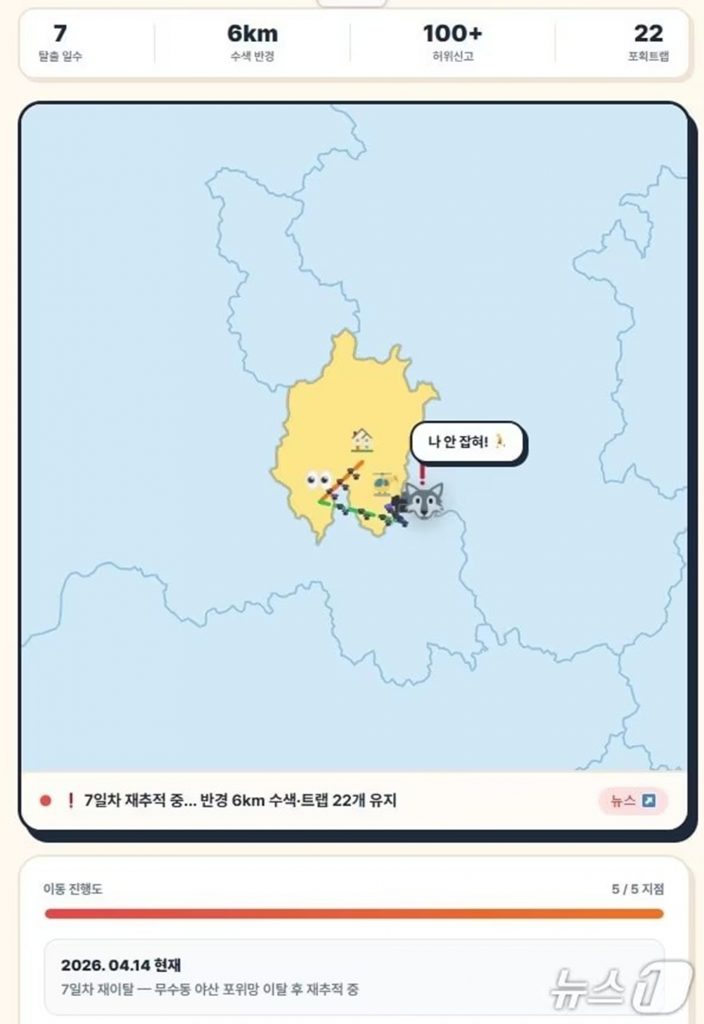 韓国・大田の動物園から脱走したオオカミ「ヌック」の行方を巡り、市民の関心が高まる中、位置情報をまとめた追跡サイトが登場し話題となっている。