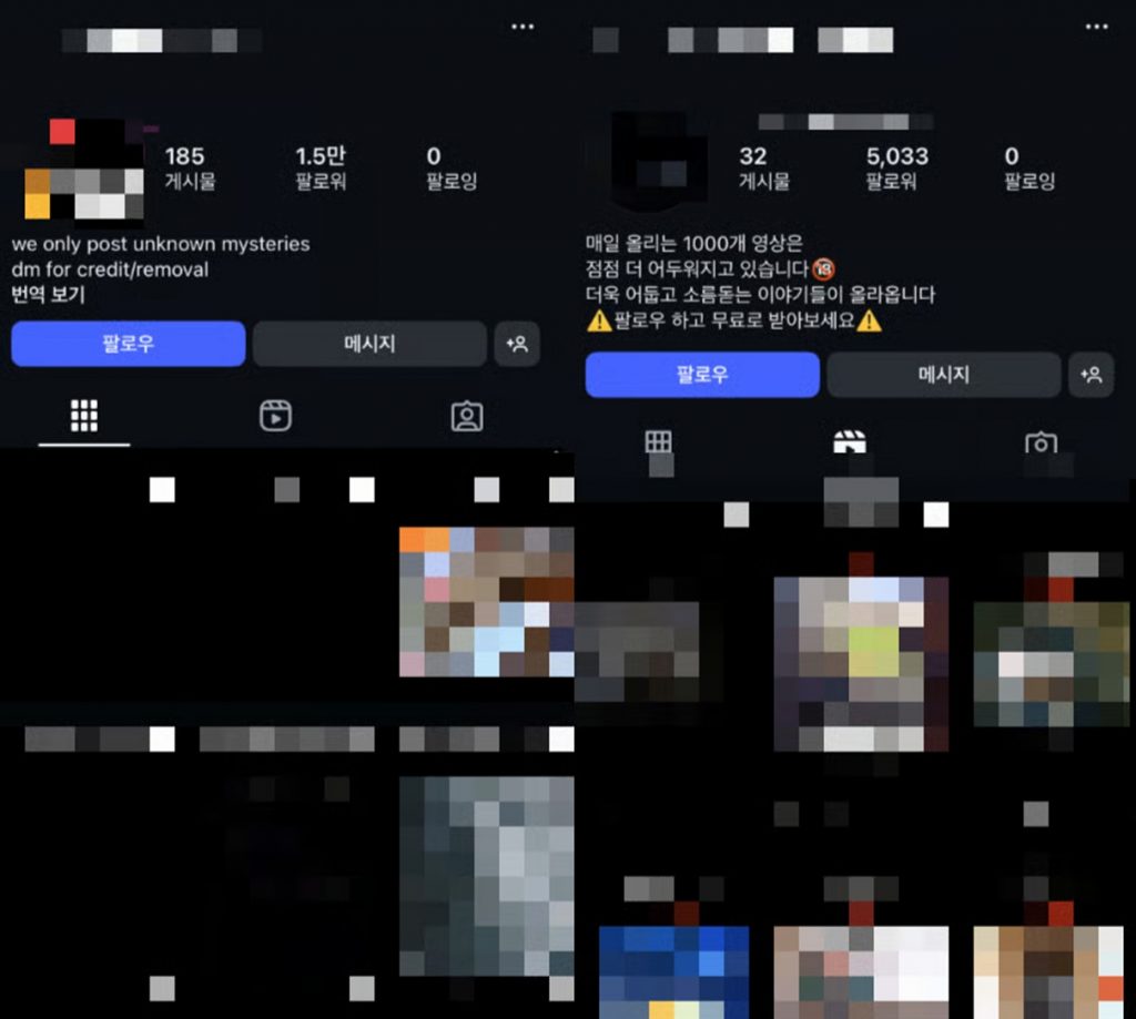 MONEYTODAY記者が10月30日、Instagramで確認したところ、国内外の事件映像を投稿しているアカウントが多数見つかった。「ダークな映像が見たいならフォローして」と煽るような文言でフォロワーを集め、数万人単位の支持を得ているケースもある。