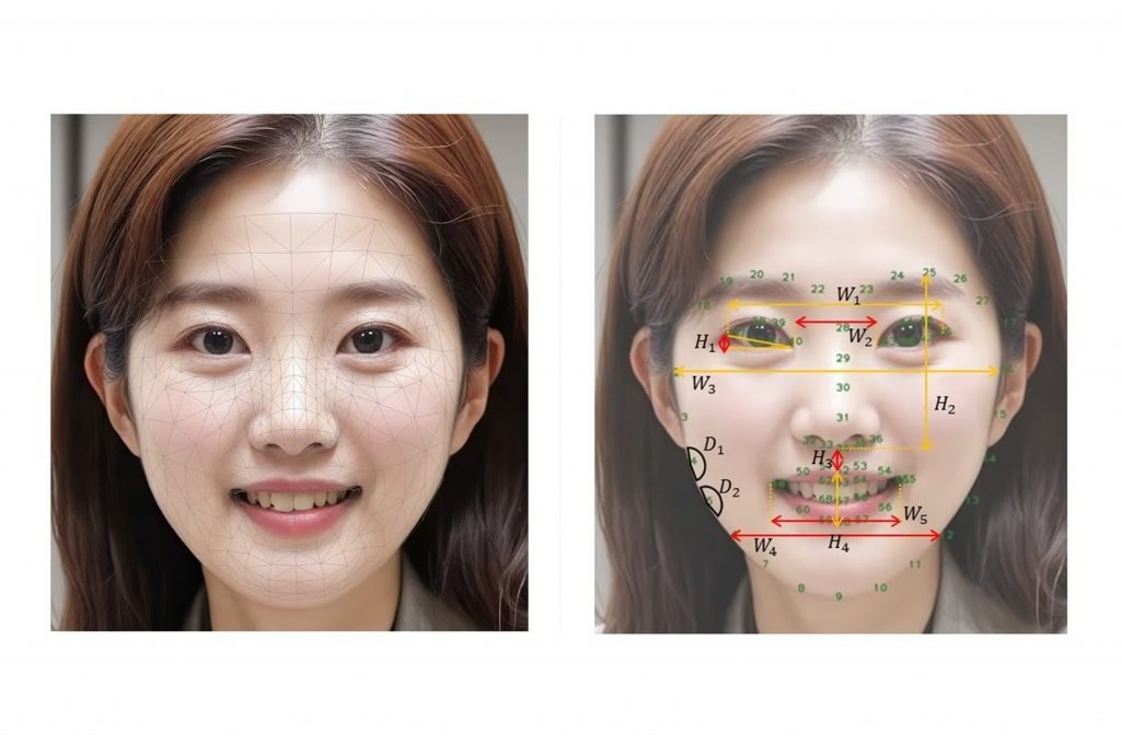 研究開発(R&I)部門は、20~60代の韓国人女性約1万6000人の高解像度顔画像を収集し、「顔特徴点抽出技術」により顔の68カ所の特徴点をAIで解析。肉眼では判別しにくい微細な構造変化を追跡し、目尻のたるみ、唇の比率、フェイスラインなど6項目の老化指標を数値化した。