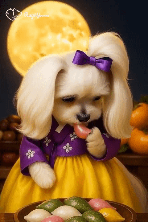 韓国ペット栄養研究所の公式インスタグラムには、ブランド「RAY&YVON」のマスコット犬・マルチーズの「トゥア」が登場。韓服を着て満月の前で松餅を食べながら「豊かな秋夕をお過ごしください」と語りかける動画が投稿された。