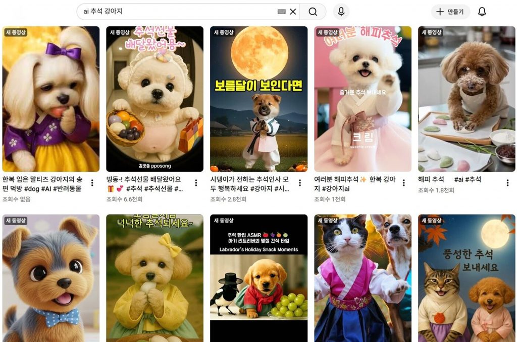 韓服を着た犬や、猫が松餅を作ったり、チヂミを焼いたりする姿を描いたAI(人工知能)映像が公開され、秋夕連休中、ネットユーザーの笑顔を誘っている。