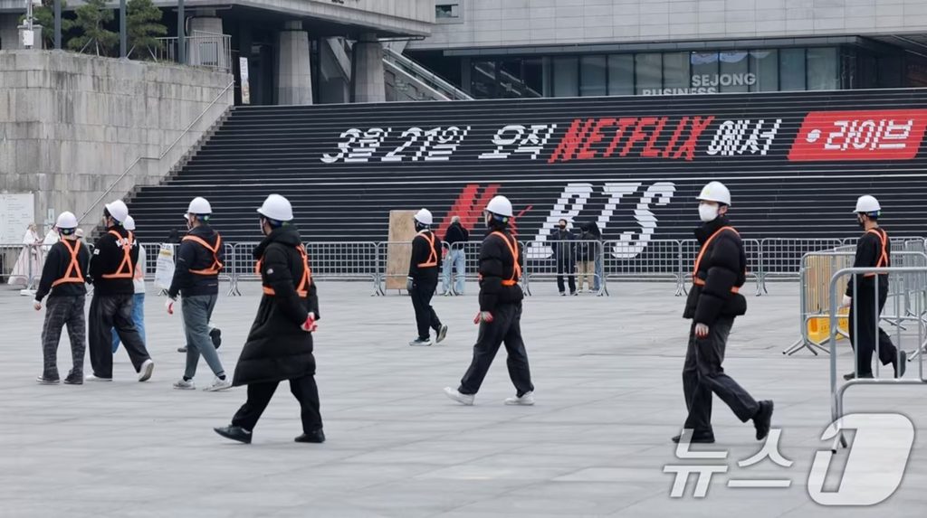 ソウル市議会によると、公演当日の午後8時から光化門広場で実施されるイベントに備え、本館と議員会館の庁舎を閉鎖する。警察は当日、光化門周辺に約26万人が集まると予想しており、安全事故防止のための措置だ。市議会は職員に対し、当日の残業を控えるよう求めている。