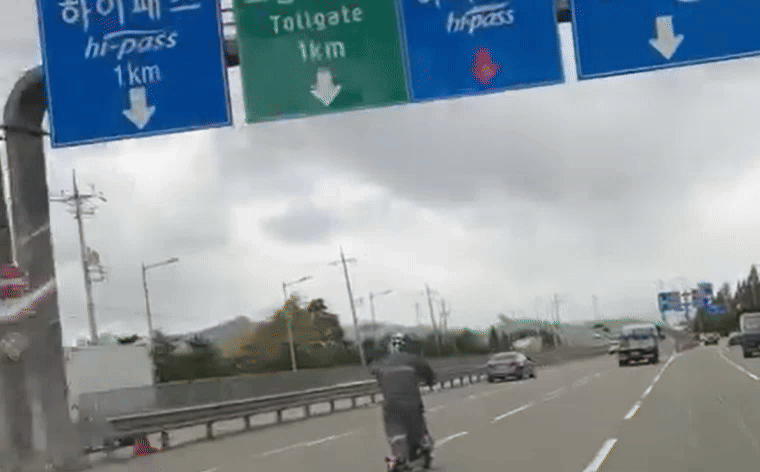 韓国の自動車関連のオンラインコミュニティ「ボベドリーム」に10月28日、「6車線道路にキックボードが現れた」という投稿が掲載された。