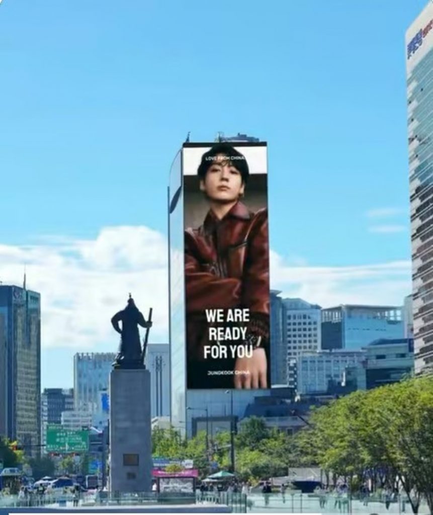 ジョングクの中国公式ファンクラブ「Jungkook China」は20~22日に、ソウル市中区のコリアナホテルに設置された長さ約60メートルの大型スクリーンで復帰祝賀映像を放映する。映像は30分ごとに1分間、繰り返し流れる。