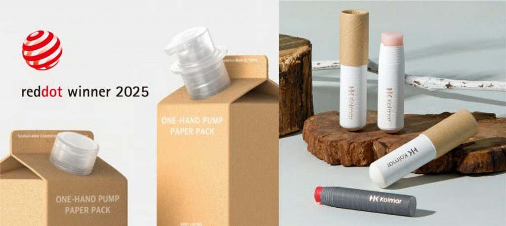 韓国コルマーも2020年に世界初の紙製チューブを実用化。従来よりプラスチック使用を80%以上削減できる技術だ。2023年には非木材紙を用いた紙スティックを、さらに翌年にはマスクパック用紙パウチを開発するなど、環境対応パッケージの提供を拡大してきた。