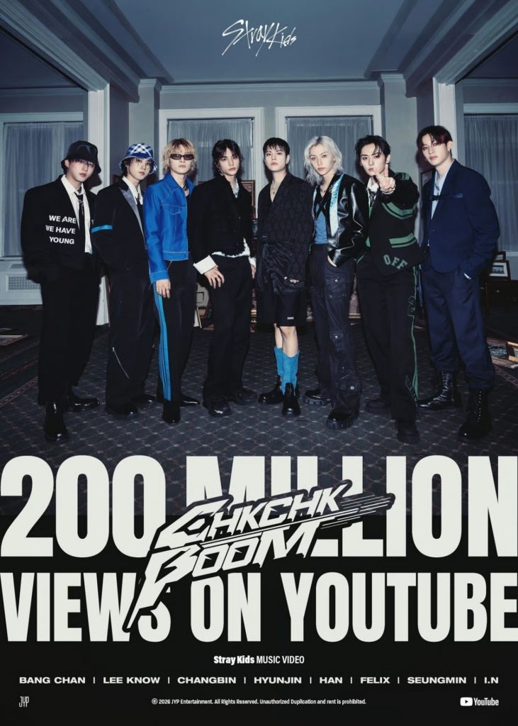 韓国の男性グループStray Kids(ストレイキッズ)による「Chk Chk Boom」のミュージックビデオ(MV)が3月31日、YouTubeで再生回数2億回を突破した。グループとしては通算8本目の2億再生超え作品となった。